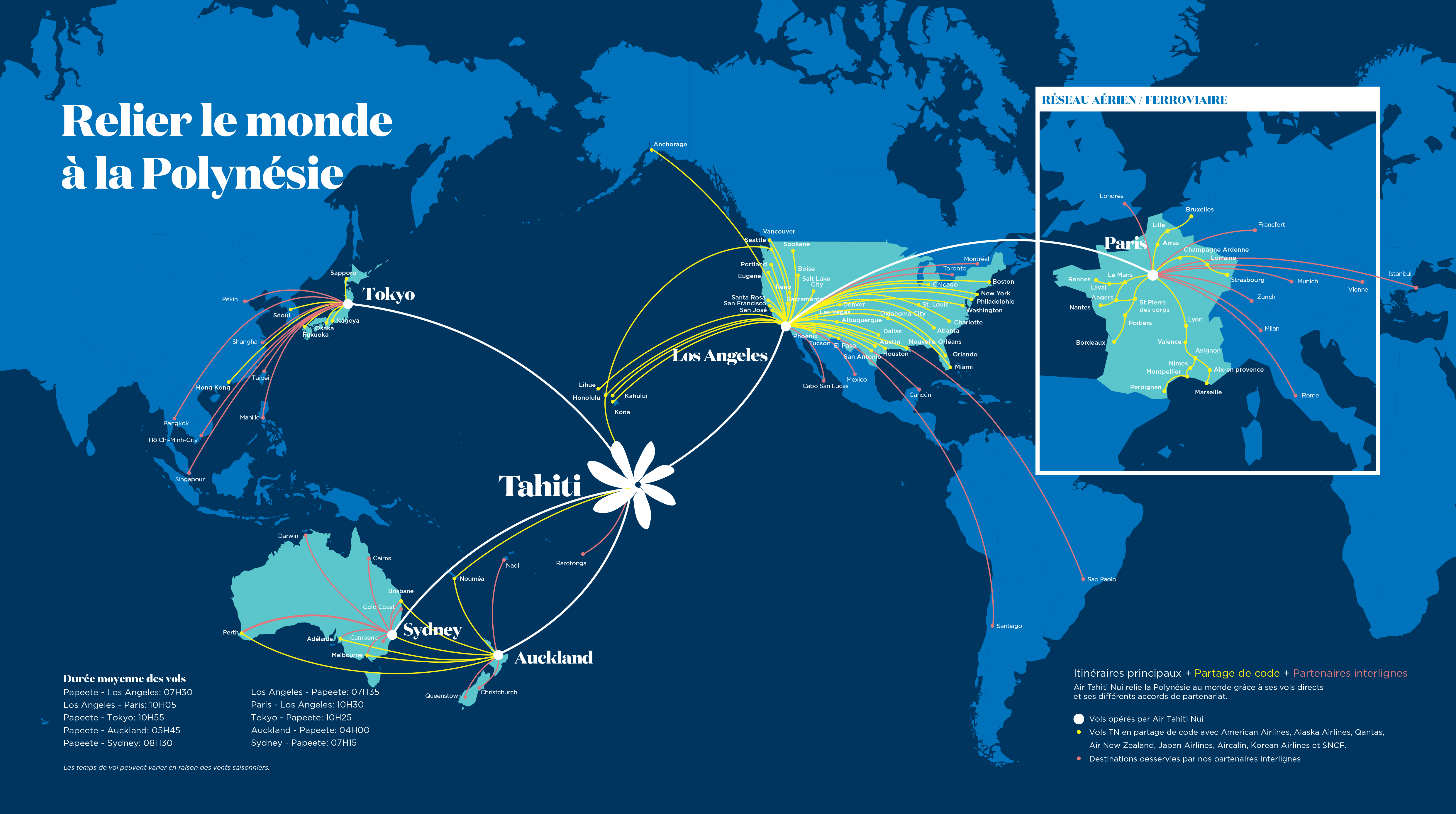 Air Tahiti Nui relie Tahiti au reste du monde. Nous proposons des vols directs entre Tahiti et Paris, Los Angeles, Auckland, Sydney et Tokyo à bord de nos Boeing 787-9, les Tahitian Dreamliner